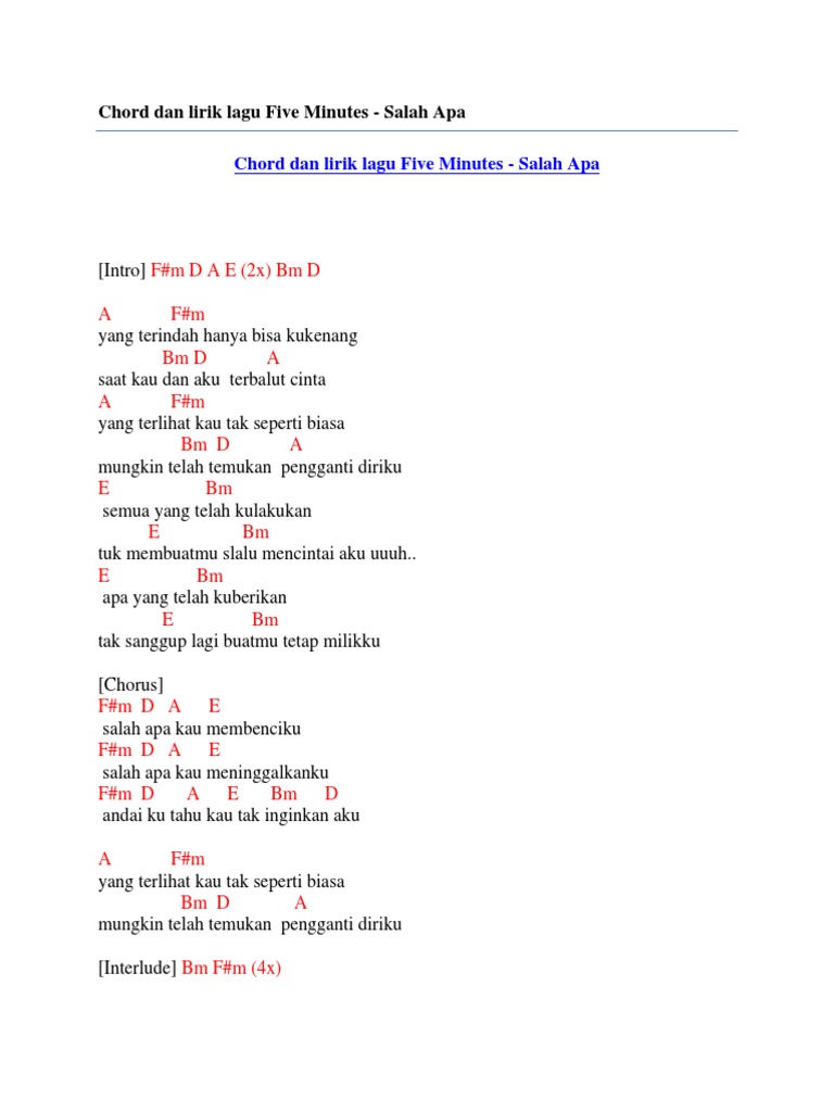 Lirik Dan Chord Five Minutes Sumpah Mati Kunci Gitar Id